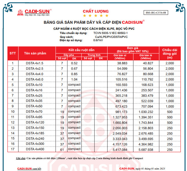 người- Cáp Đồng ngầm 0.6/1kV DSTA-4xxx - Cadisun