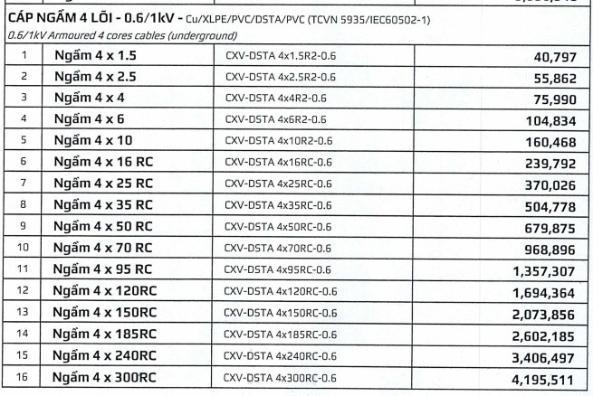 người- Cáp NGẦM 4 lõi - 0.6/1kV - Cu/XLPE/PVC/DSTA/PVC - Goldcup