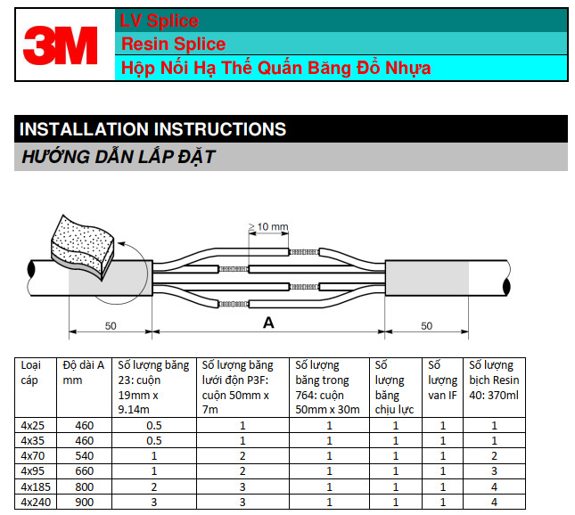 | 5 | Hộp nối 4x35/50mm2 | GTS 1/4Cx35/50 | Bộ | 1 | 2.815.800 | Hộp nối loại Quấn băng + Epoxy | |||
