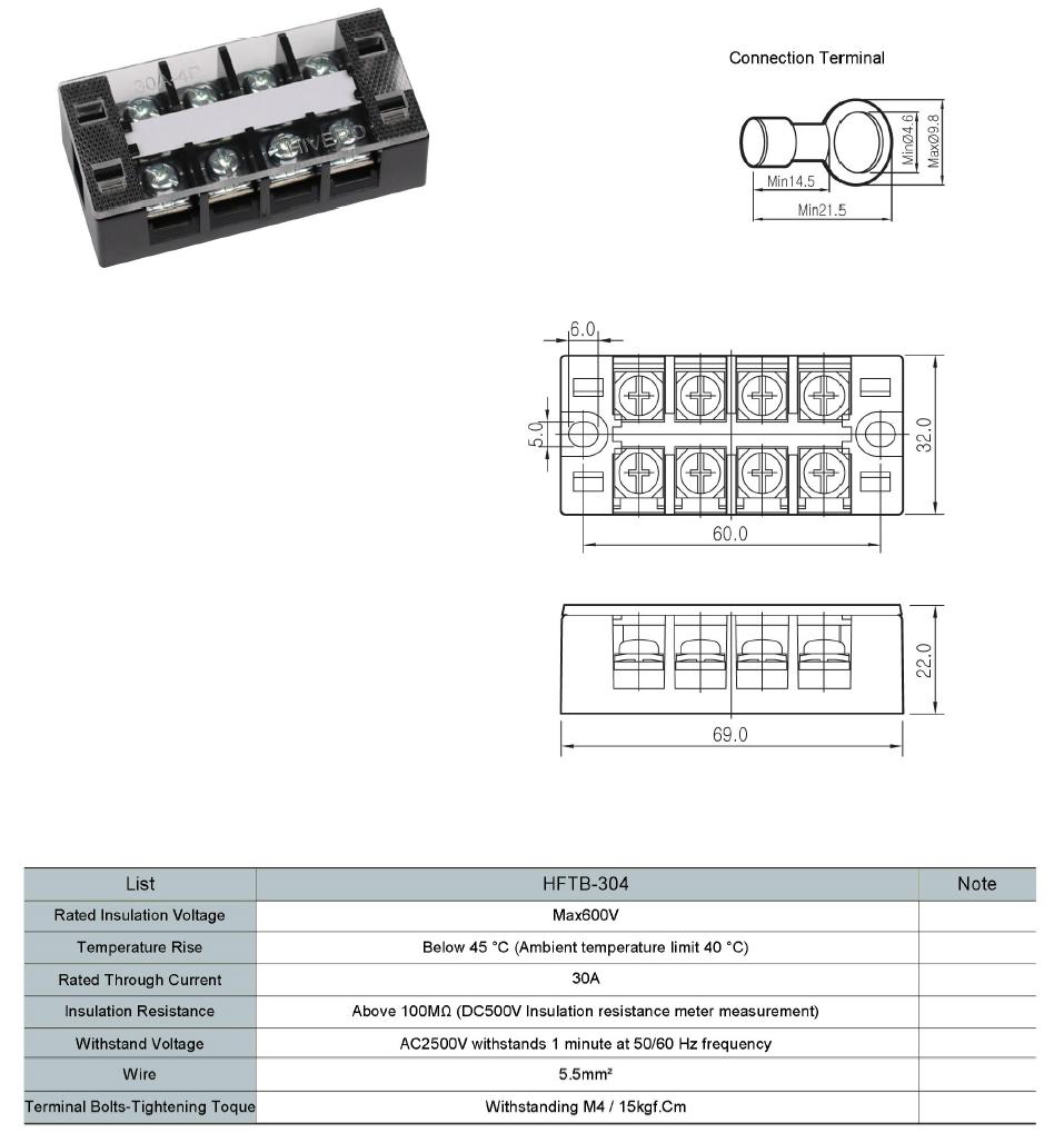 Cầu đấu dây 30A 4P (HFTB-304) - Hivero