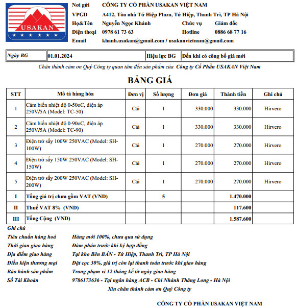 Bảng giá Hivero 05.09.2023