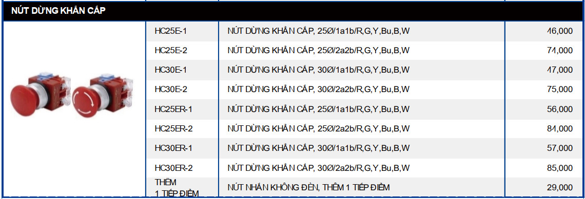 Nút dừng khẩn cấp có loại tự Reset khi nhả tay (HC25E) và có loại phải xoay để Reset (HC25ER)
